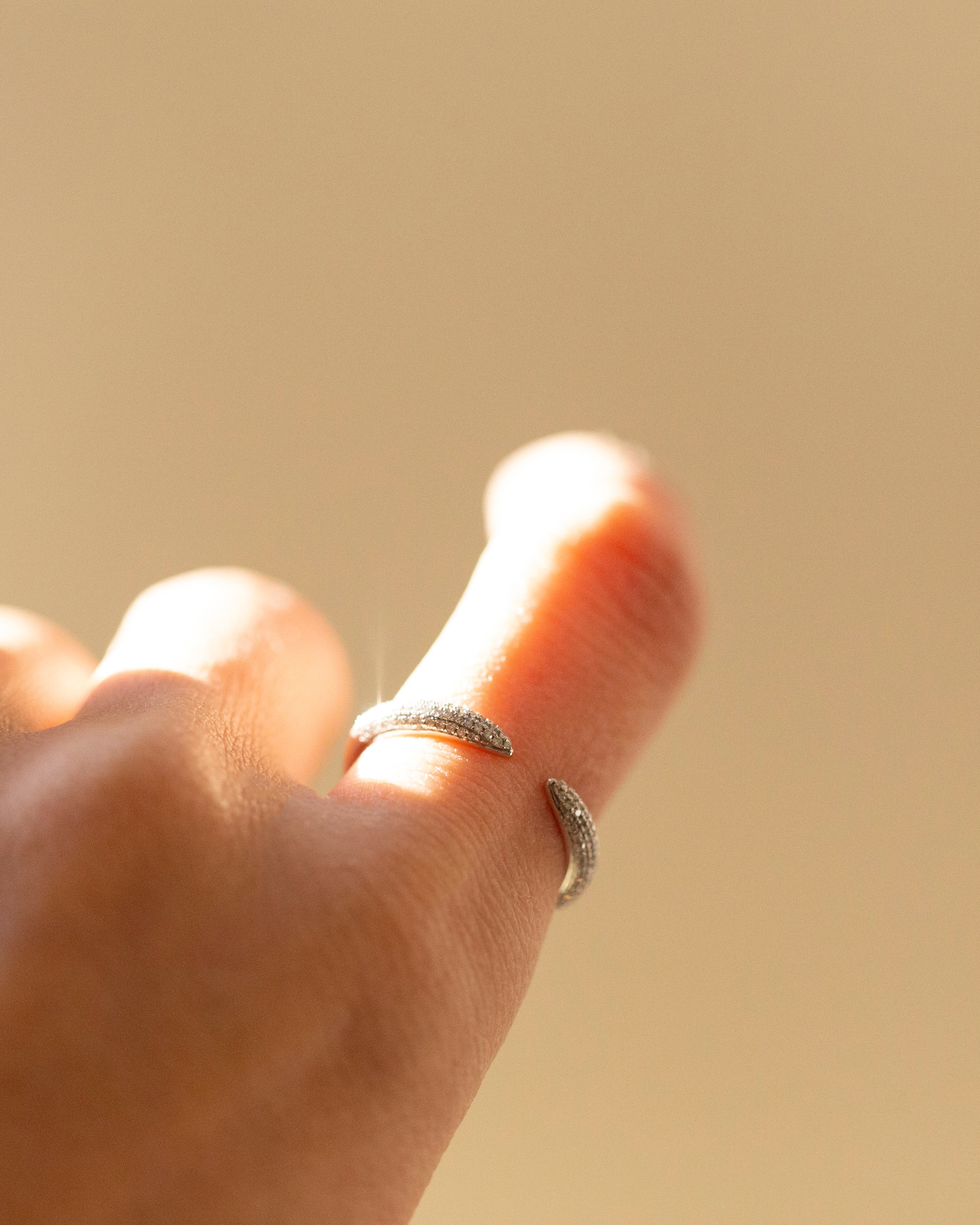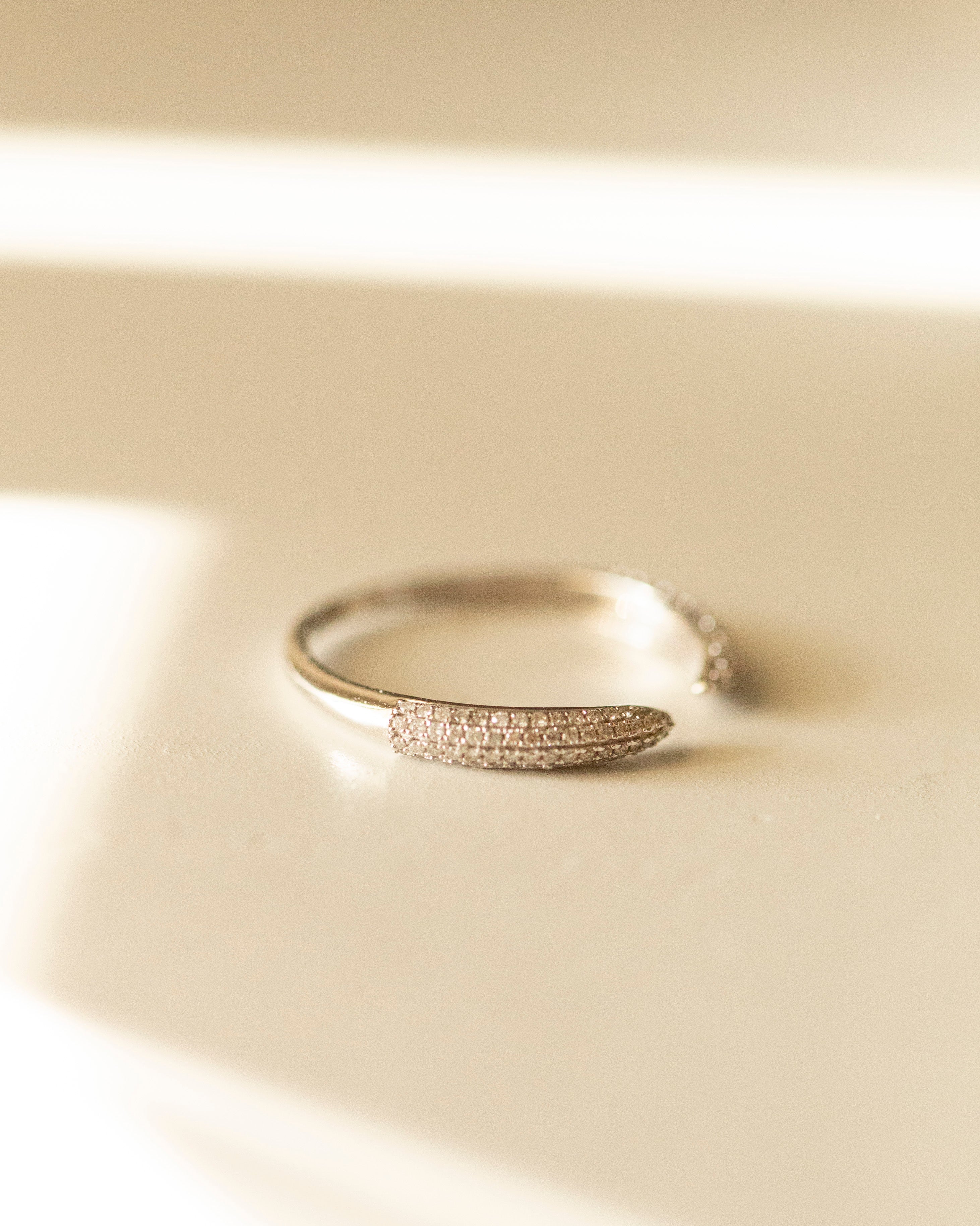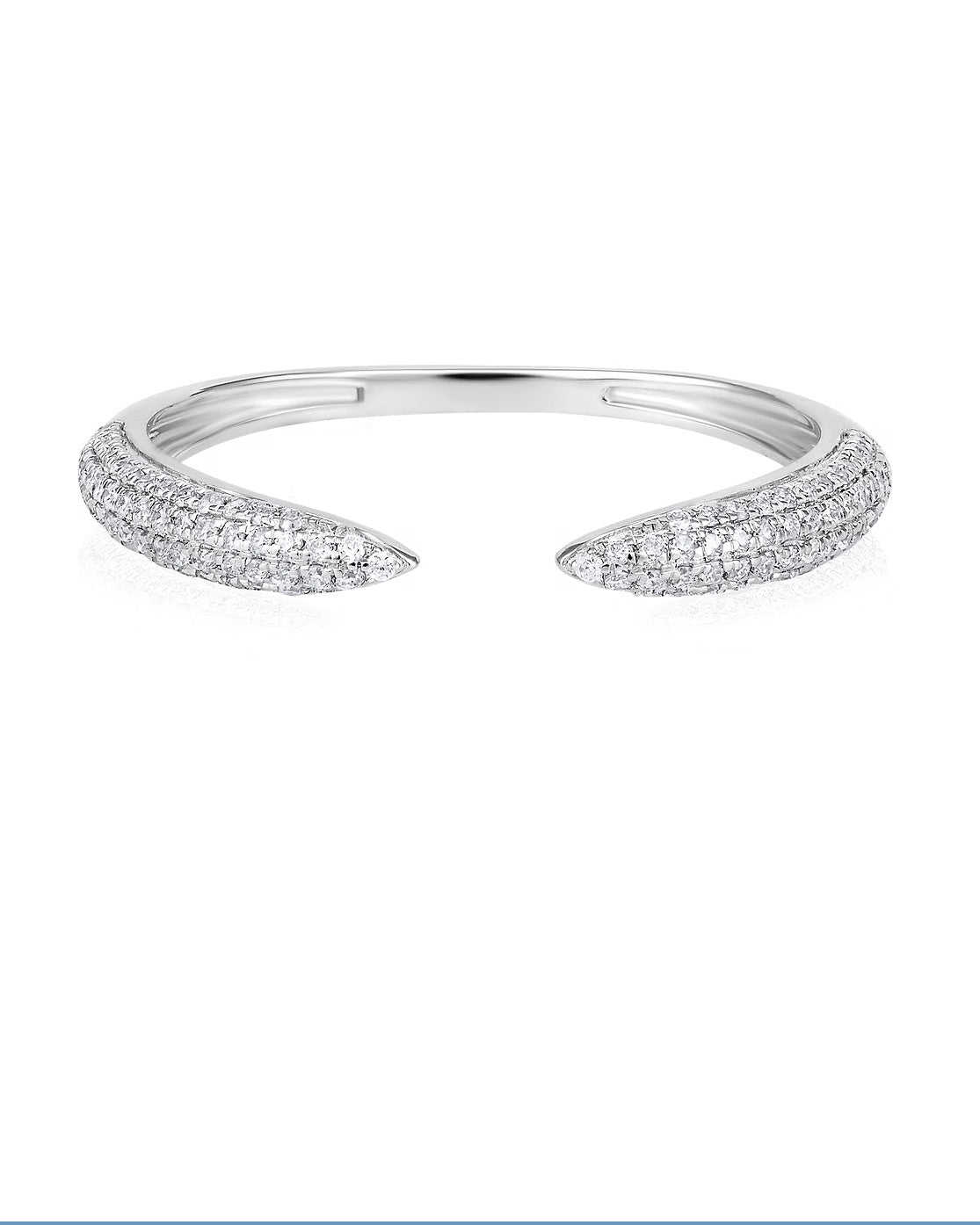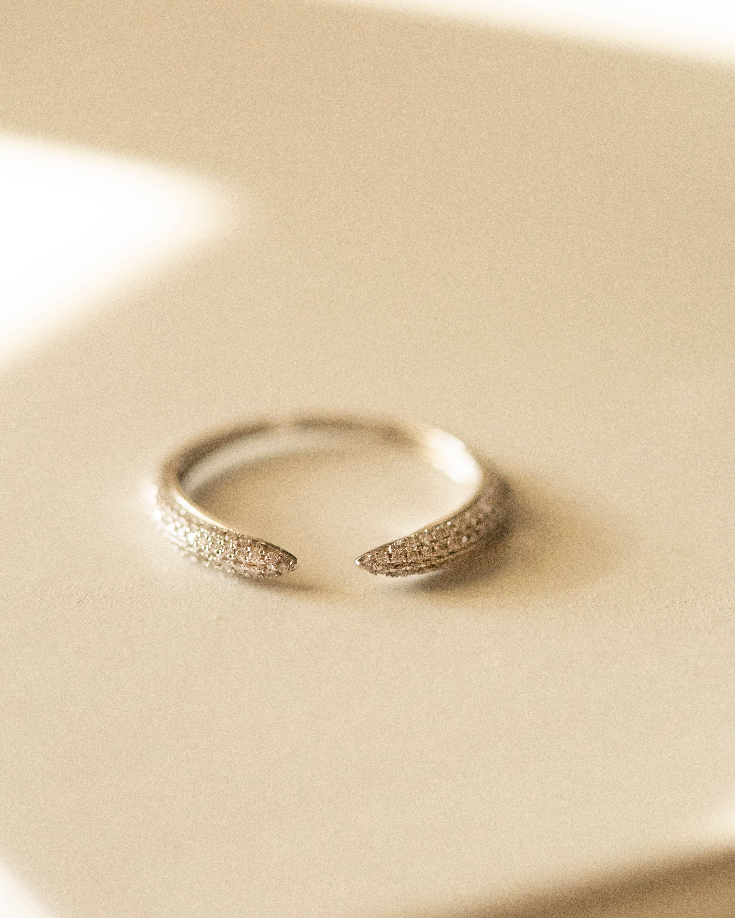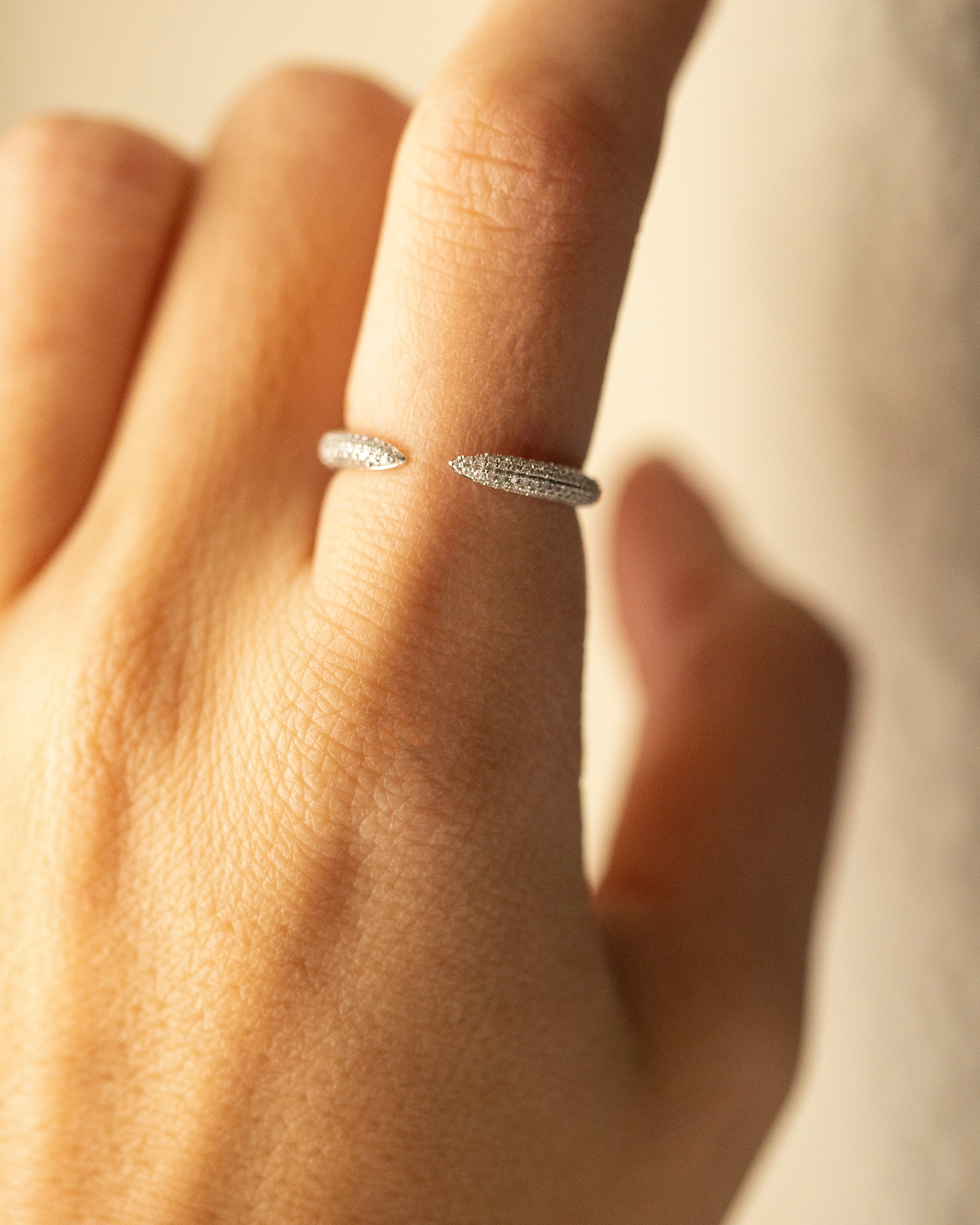 14k White Gold Pave Diamond Open Ring Elegant, modern, and effortlessly sparkly this pave diamond open ring is crafted in solid 14k white gold and features shimmering micro pave diamonds on each tapered end. Its open front design gives it a chic, minimal look thats perfect for everyday luxury.