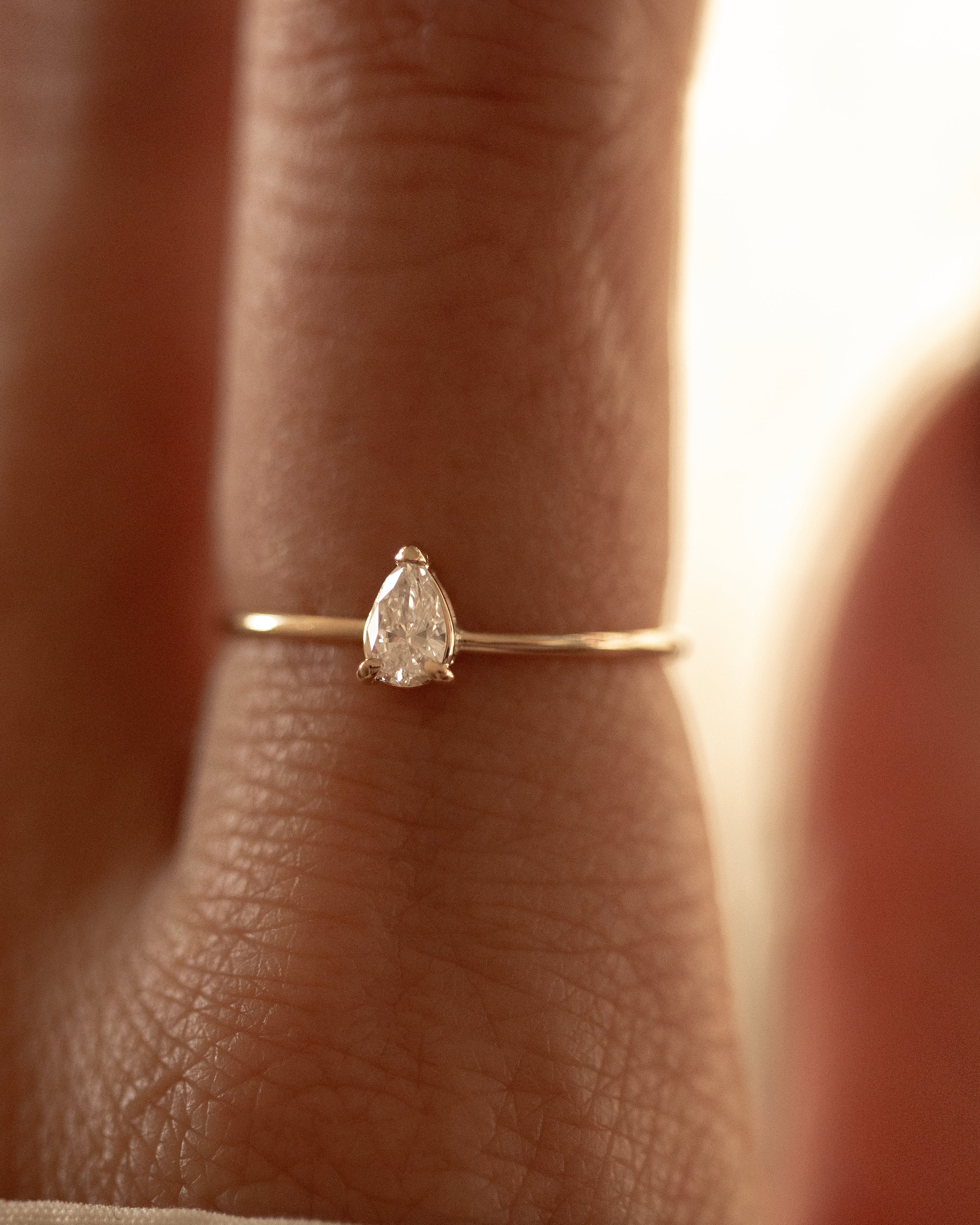 Handcrafted with a 0.25ct (3x5mm) pear shaped lab diamond, this minimalist p8iece is perfect for stacking or wearing solo for a delicate, elegant look.