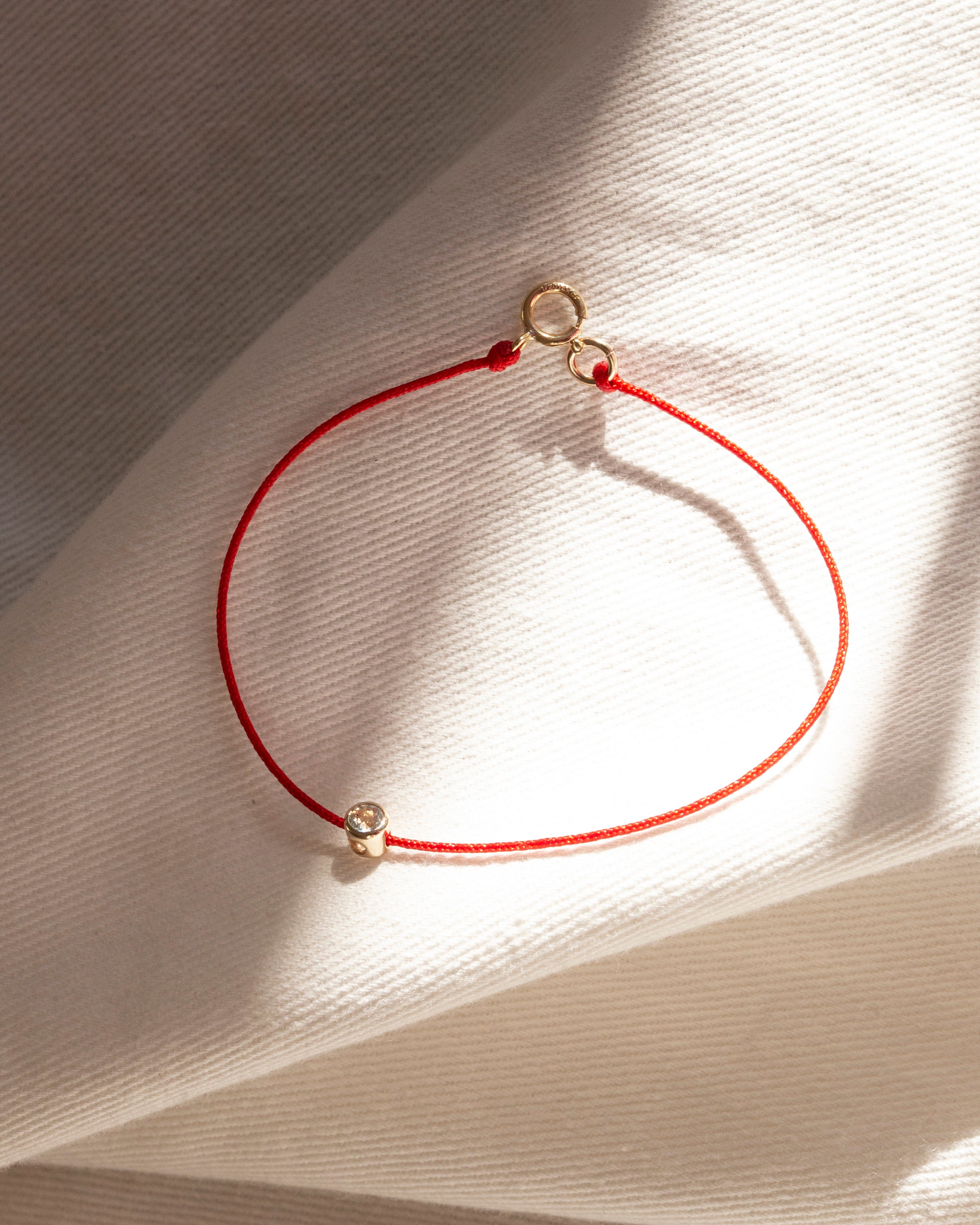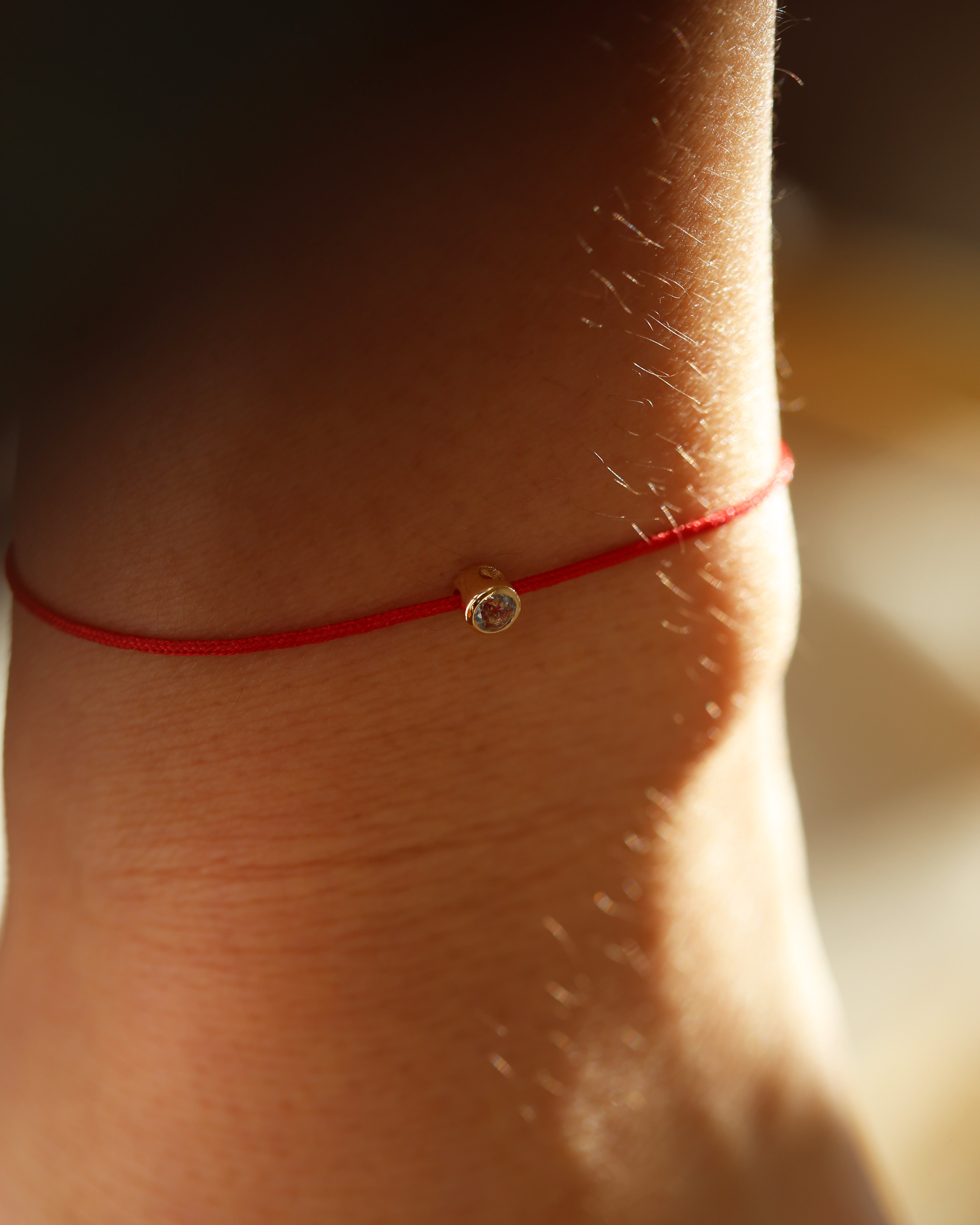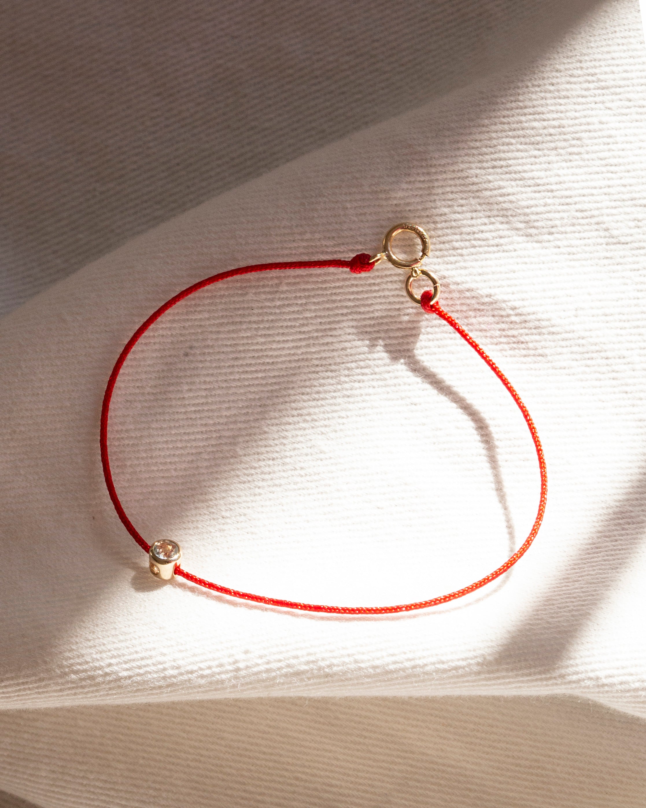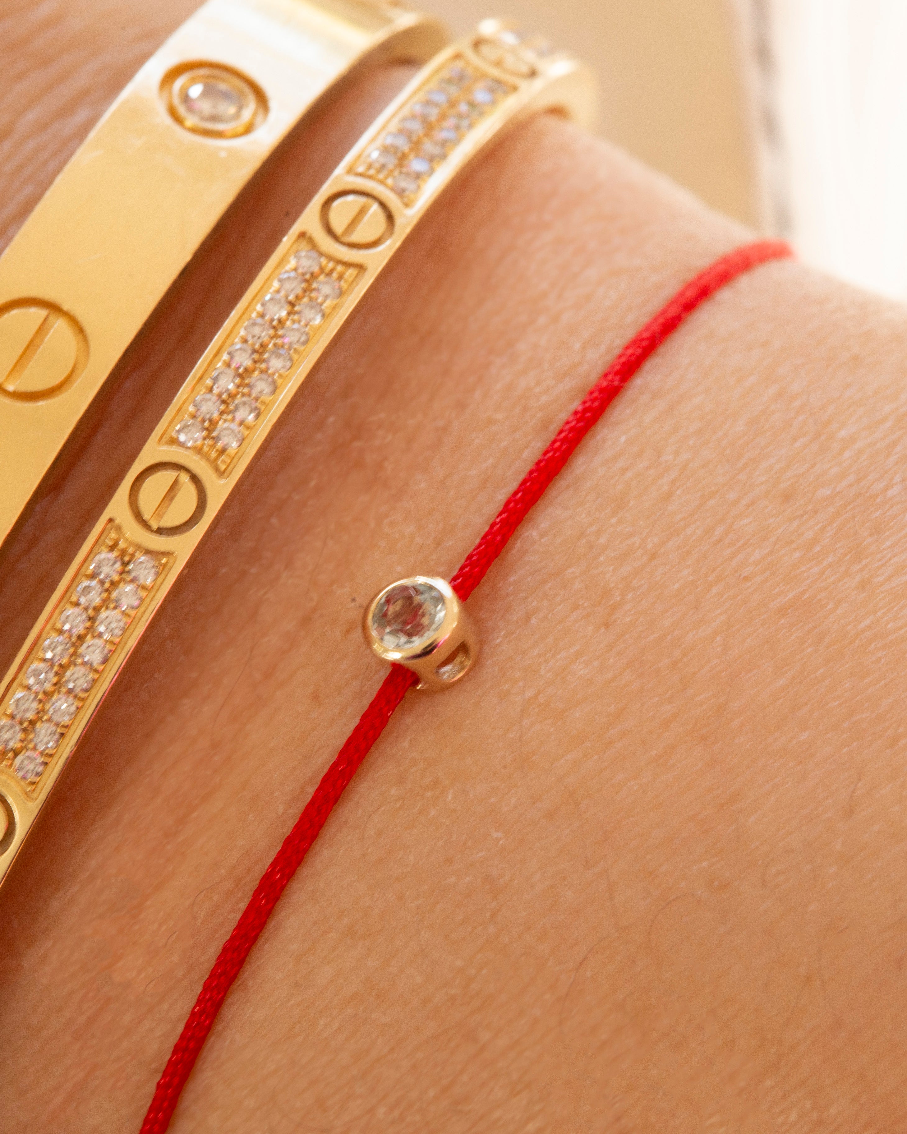 14k Gold Birthstone Charm RED String Thread Bracelet