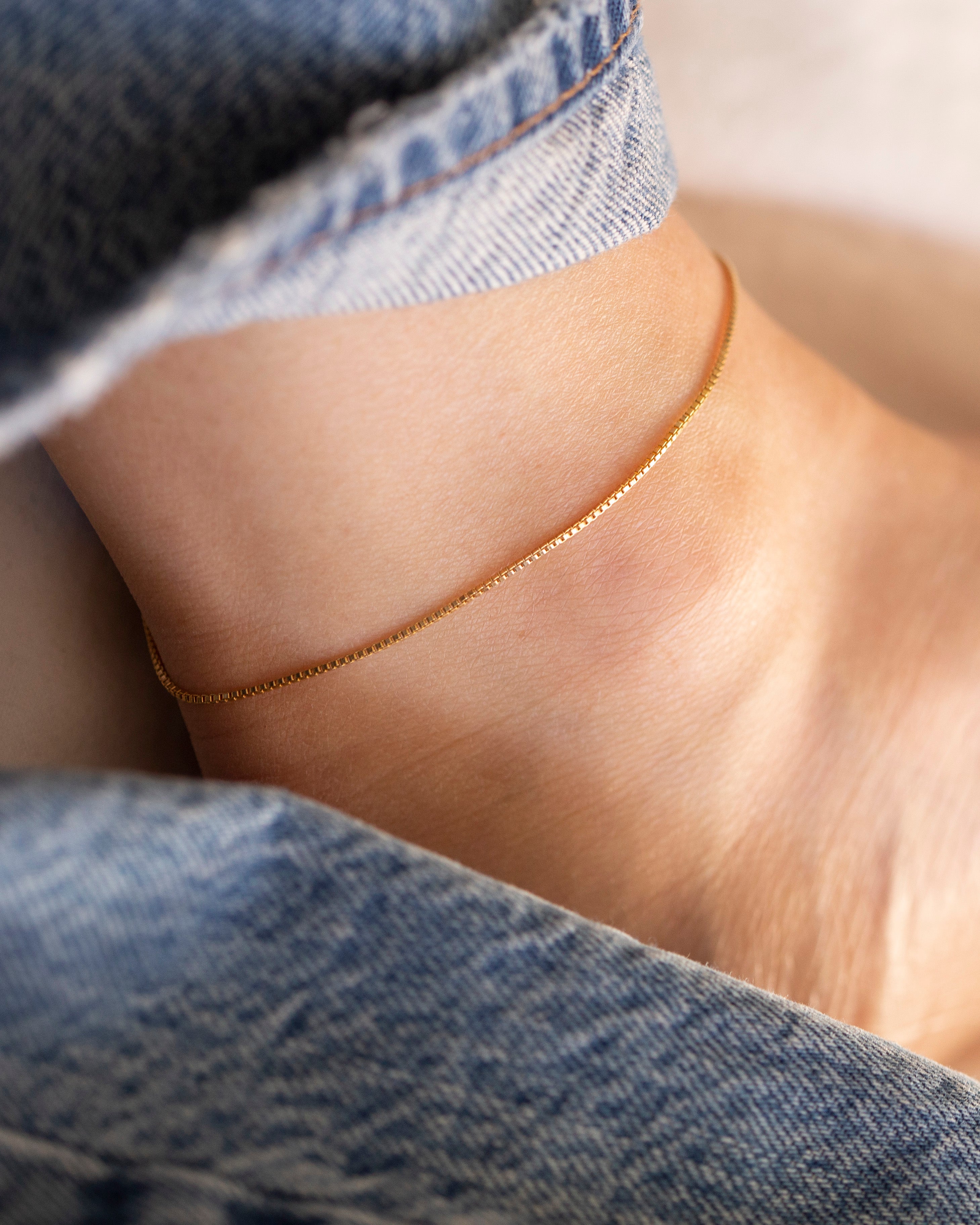 Dainty Box Chain Anklet for Women