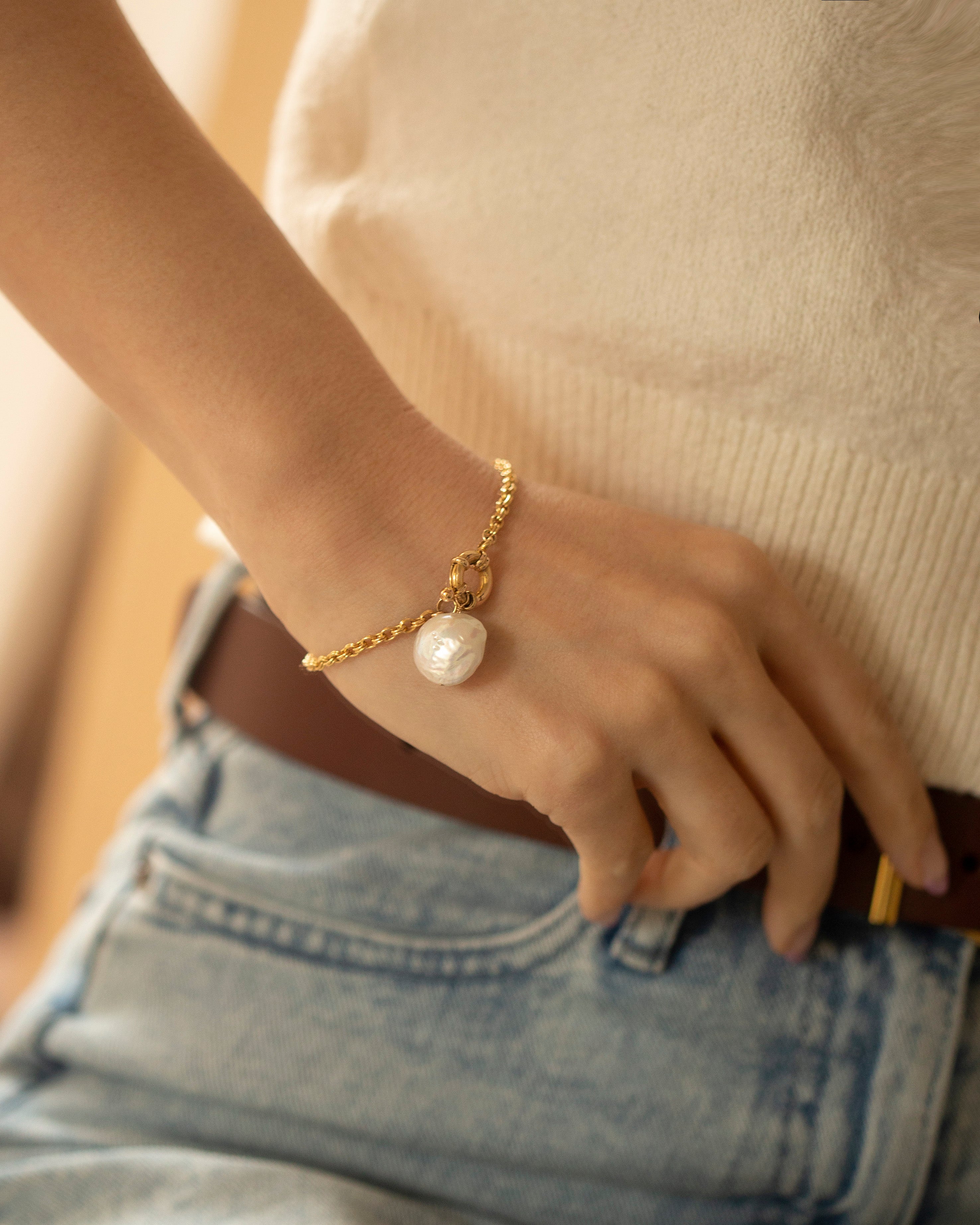Luxe Link Pearl Charm Bracelet